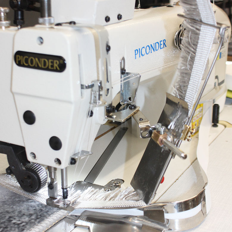 Özel ölçülü daire ve oval halı üretimleri için tasarlanmış PICONDER 3800-A, yüksek hassasiyet ve güçlü yapısı ile saçak birleştirme işlemlerinde maksimum verimlilik sağlar. Merdaneli çift iğne sistemi sayesinde halı yüzeyine sabit tutuş ve pürüzsüz ilerleme sunarak hatasız birleştirme kalitesi elde edilir.